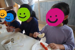 おやつはポラリスの畑で採れたトマトを使ったトマト飴と