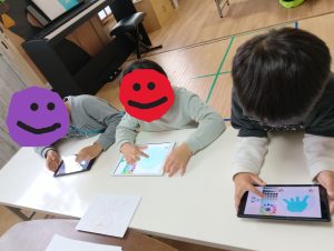 アプリを使用し、海の生き物を自分で動かす事に挑戦してみました🐟 魚の動きや色に子ども達の個性を感じ、夢中で取り組んでいましたよ♪