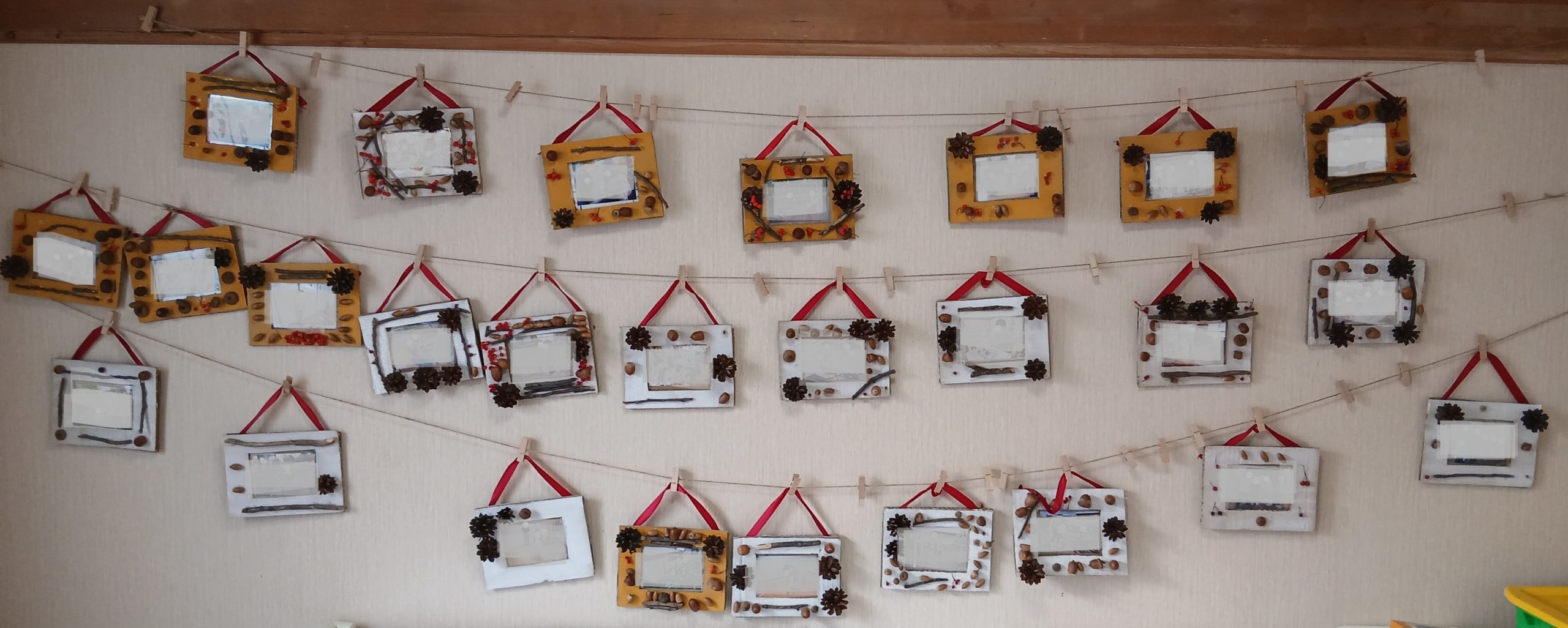 拾ってきた実をボンドやグルーガンを使って飾り付けをしています😊