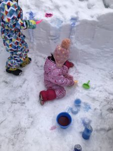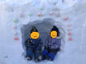 ミニかまくらも作り、入ってみると落ち着いてしまう子も☺