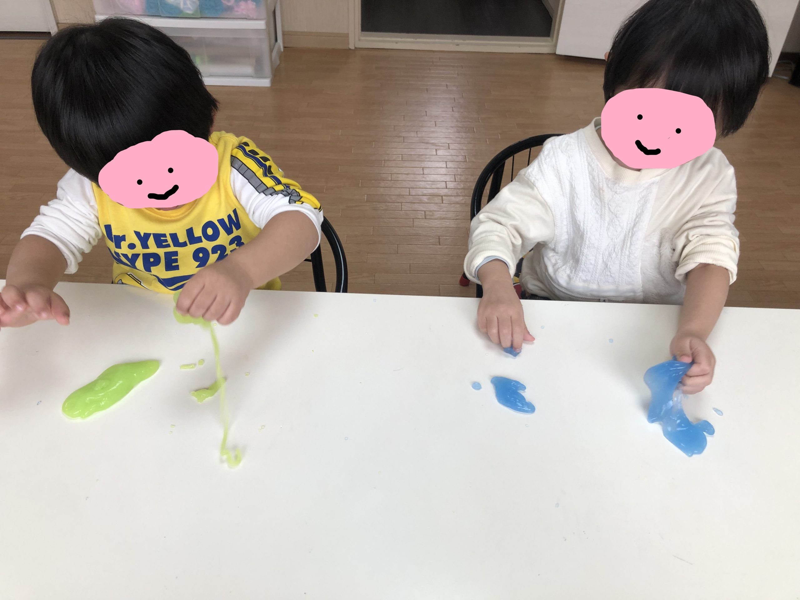 最近新しいお友達も増えたので、久しぶりにスライムを作って遊びました♪