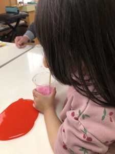 ホウ砂水を混ぜるとどんどんスライム状になっていくのも楽しい☆