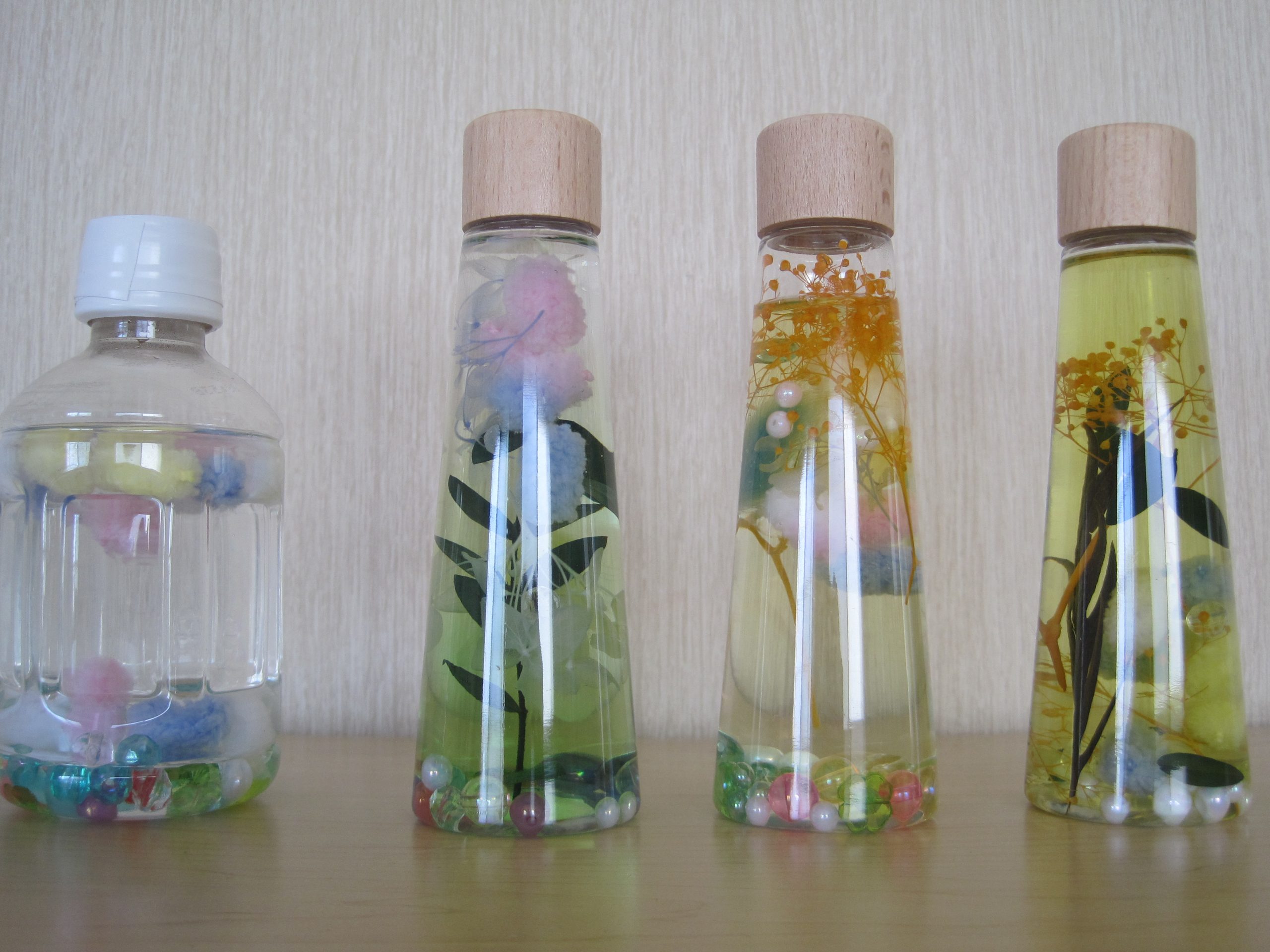 お花やポンポン、様々な形のビーズなど 自分で好きな材料を決めて入れました!