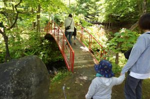 恐る恐る橋を渡ったり、池に何かいないか観察したり