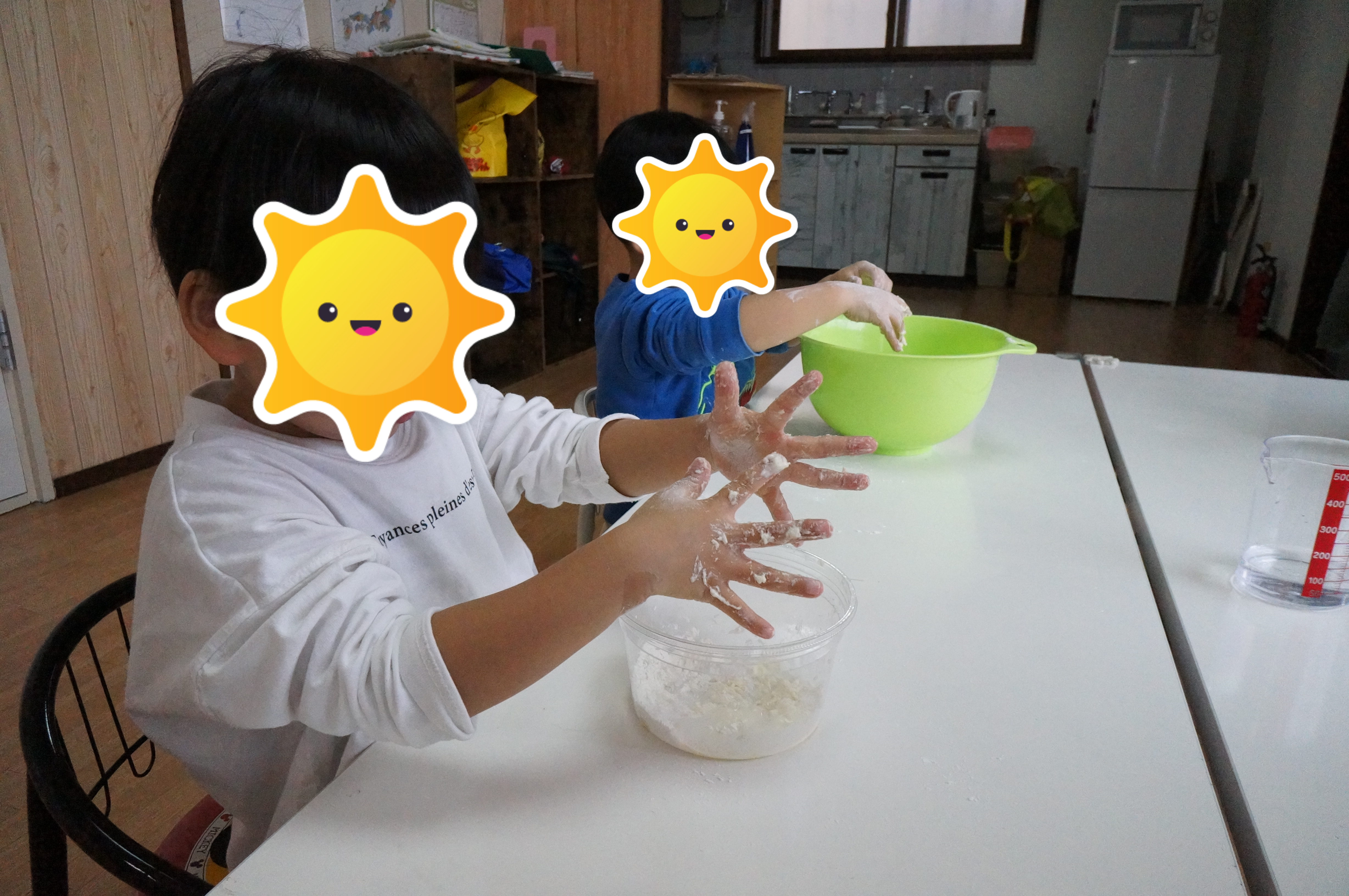 先週、午前の未就学さんで粉を使った感触遊びをしました♪ サラサラの粉の状態でさわさわ触り、「きもち~」と良い表情を...