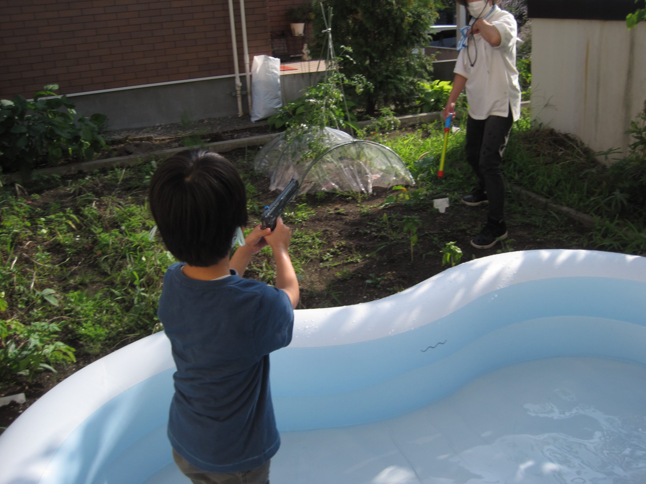 先週・先々週と暑い日に庭にプールを出し、水遊びをしました! 足だけでも水につかっているととても涼しく、時間も忘れて...