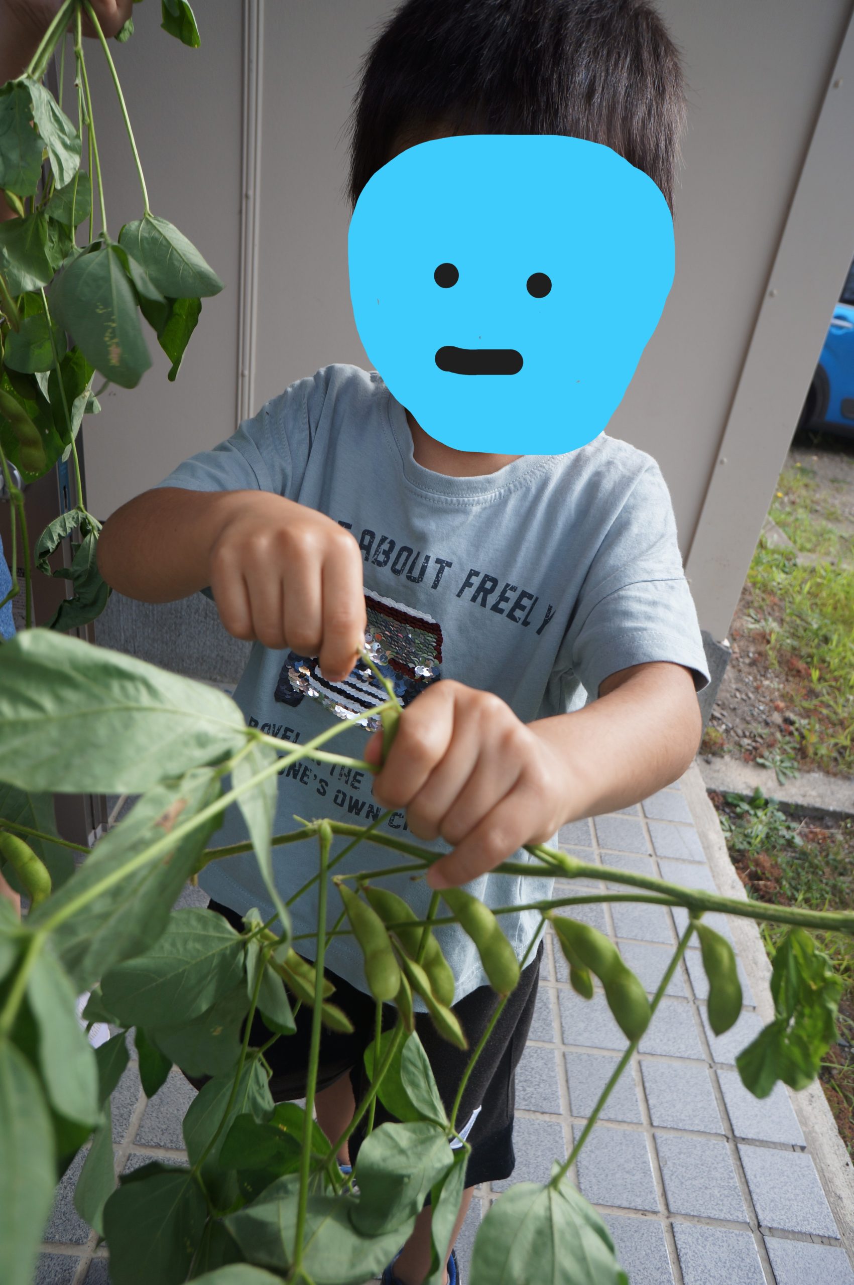 8月末日、春に植えた枝豆がようやく実りました!! 枝豆を楽しみにしていた子ども達、「枝豆好きー!」 「早く食べたい...