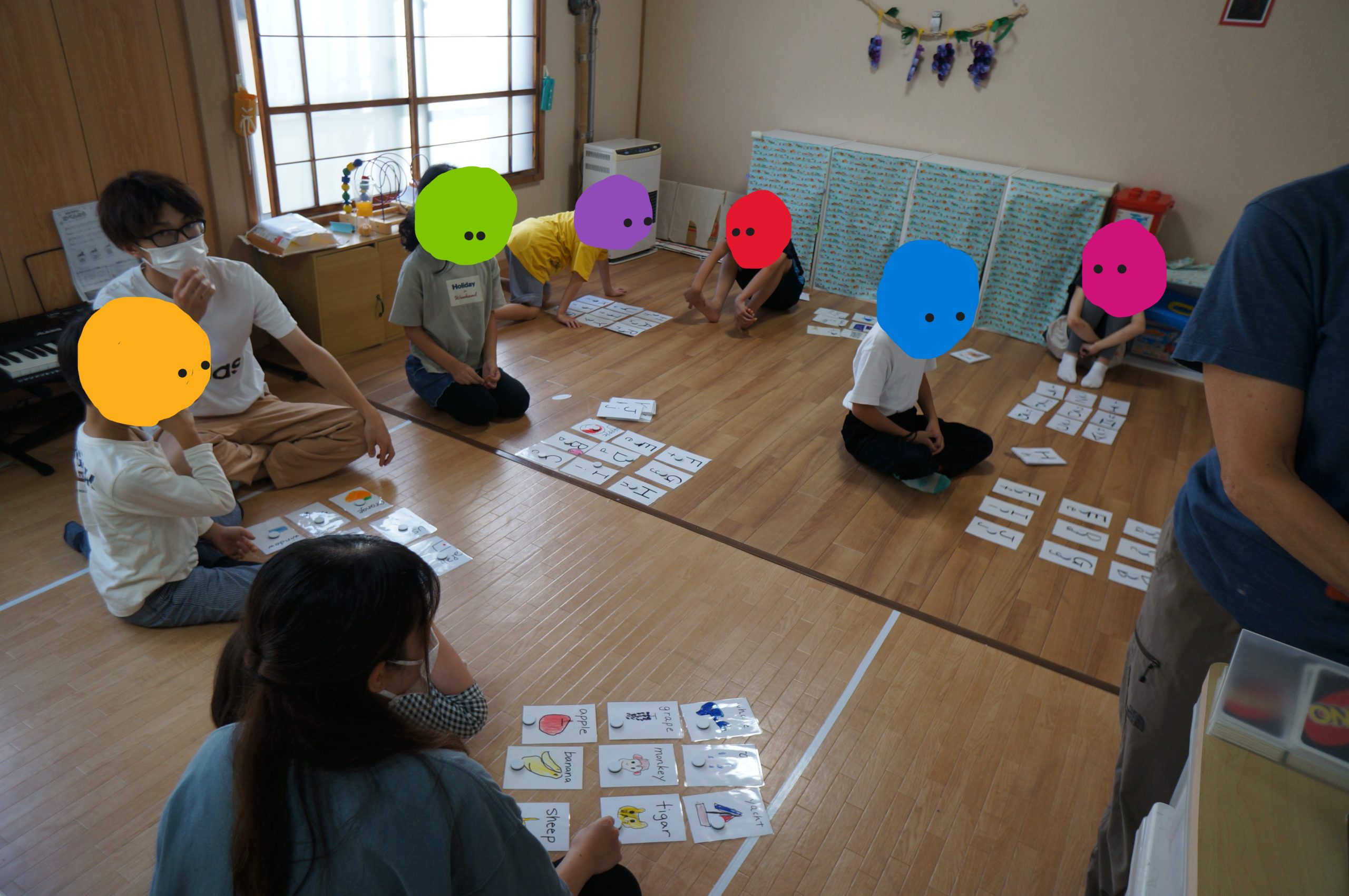 英語活動でビンゴ遊びをしました♪ 子ども達も「イエーイ!!」と大盛り上がり! 好きなアルファベットを9枚並べ、...