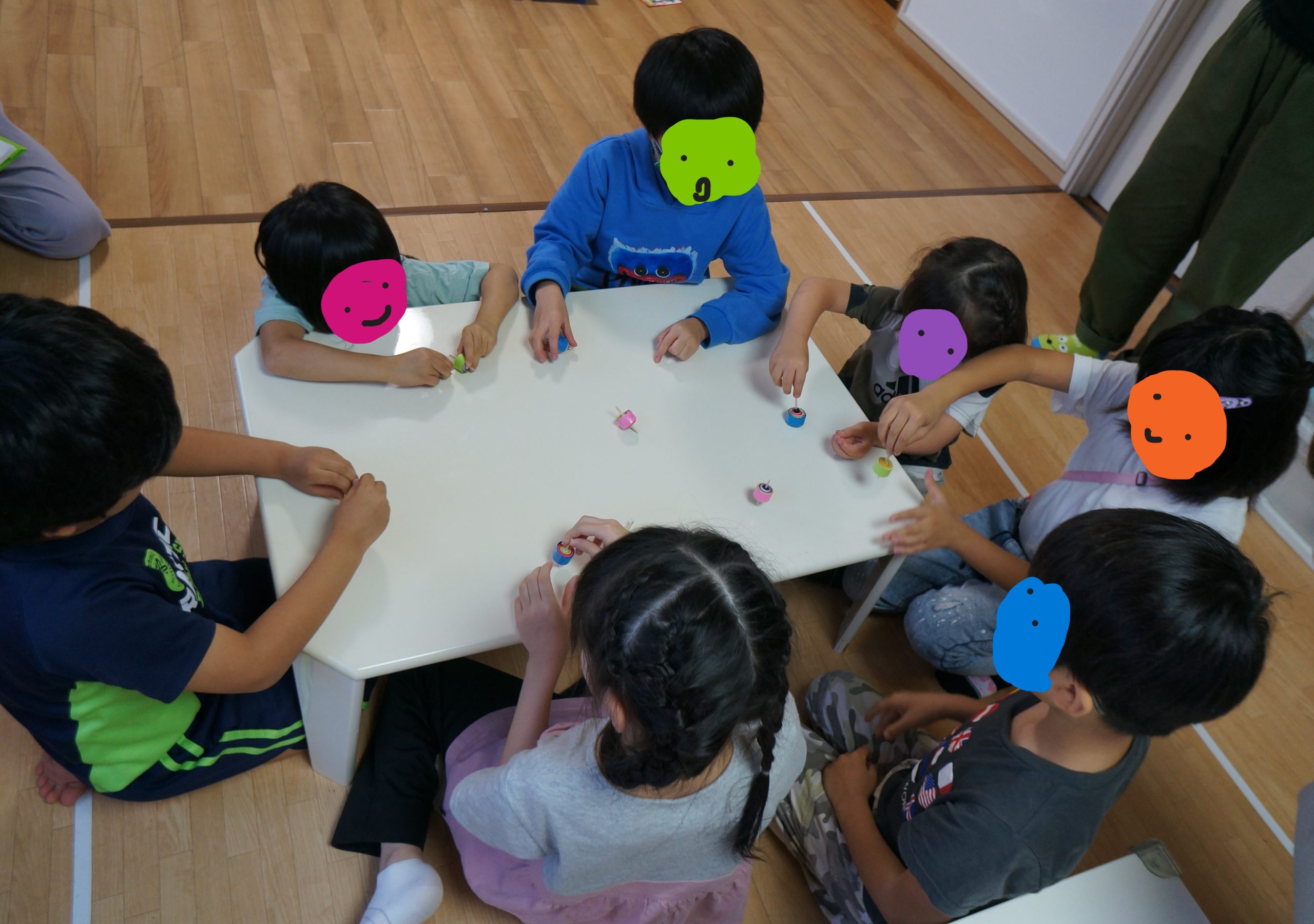 おもちゃ製作で「くるくる巻きゴマ」を作りました! 細い画用紙をくるくる巻き付けて作りましたよ✂ 色を選...
