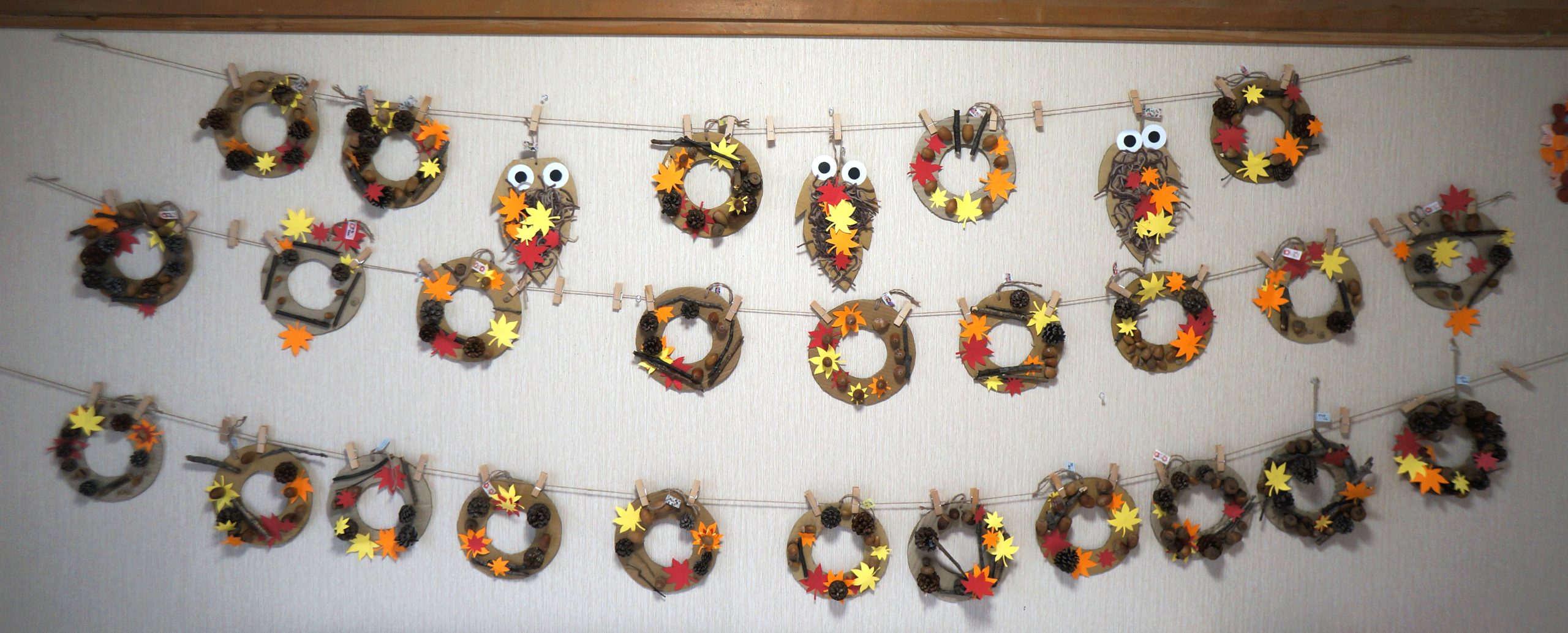 今月の制作は『秋のリース』を作ってみよう!でした♪ 先月、子ども達と拾いに行った『どんぐり・松ぼっくり・木の枝』...
