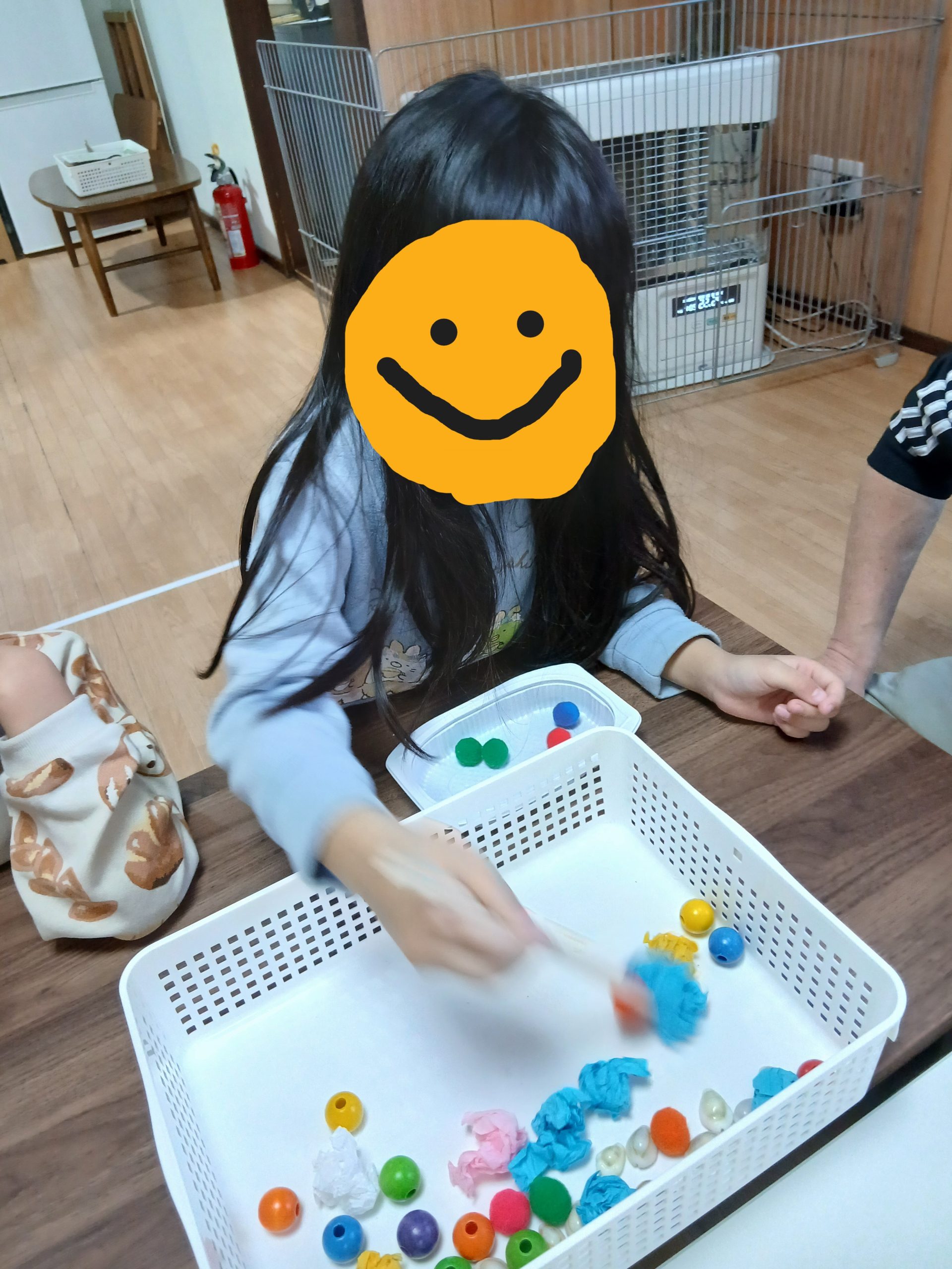 11月11日はお箸の日、ということでお箸の練習をしました! お箸の持ち方を改めて確認し、色々な形をしたおもちゃなど...