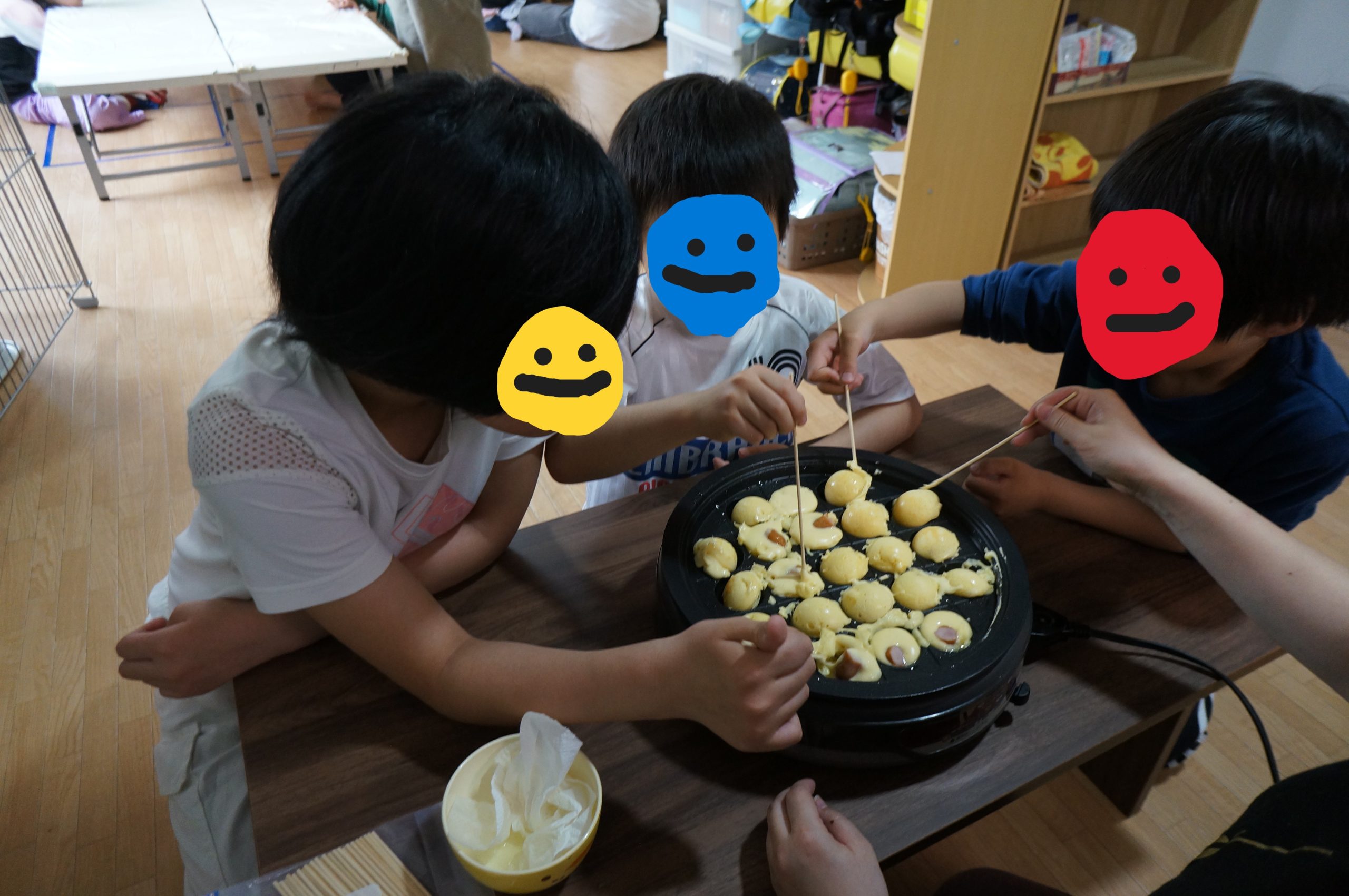 小学生のお友達の今年度初めてのクッキングをしました! たこ焼き器を使って、ホットケーキミックスの生地を流し込み、 ...