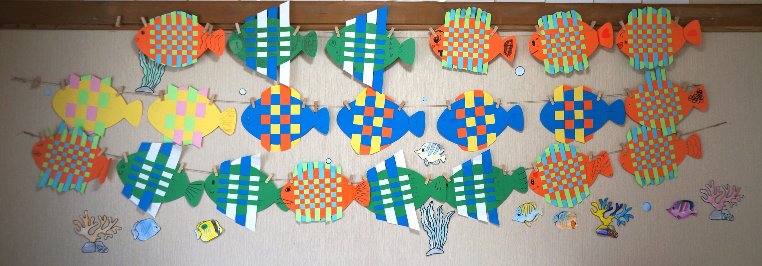 5月の制作は『魚』をテーマ取り組みました! 2色の画用紙を魚型の台紙に左右上下で組み込んでいく内容です! ...