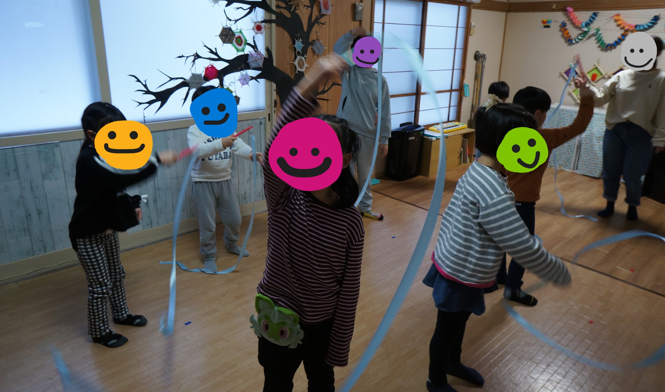 子ども達が楽しみにしている音楽活動♪ 今回のメインは【リボン】でした!! アナと雪の女王の曲に合わせて自由にリ...